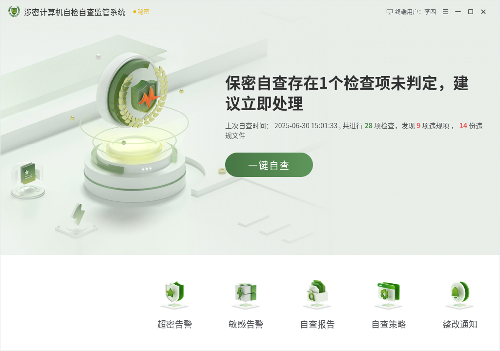 • 涉密計算機自檢自查監(jiān)管系統(tǒng)——筑牢國防信安防線